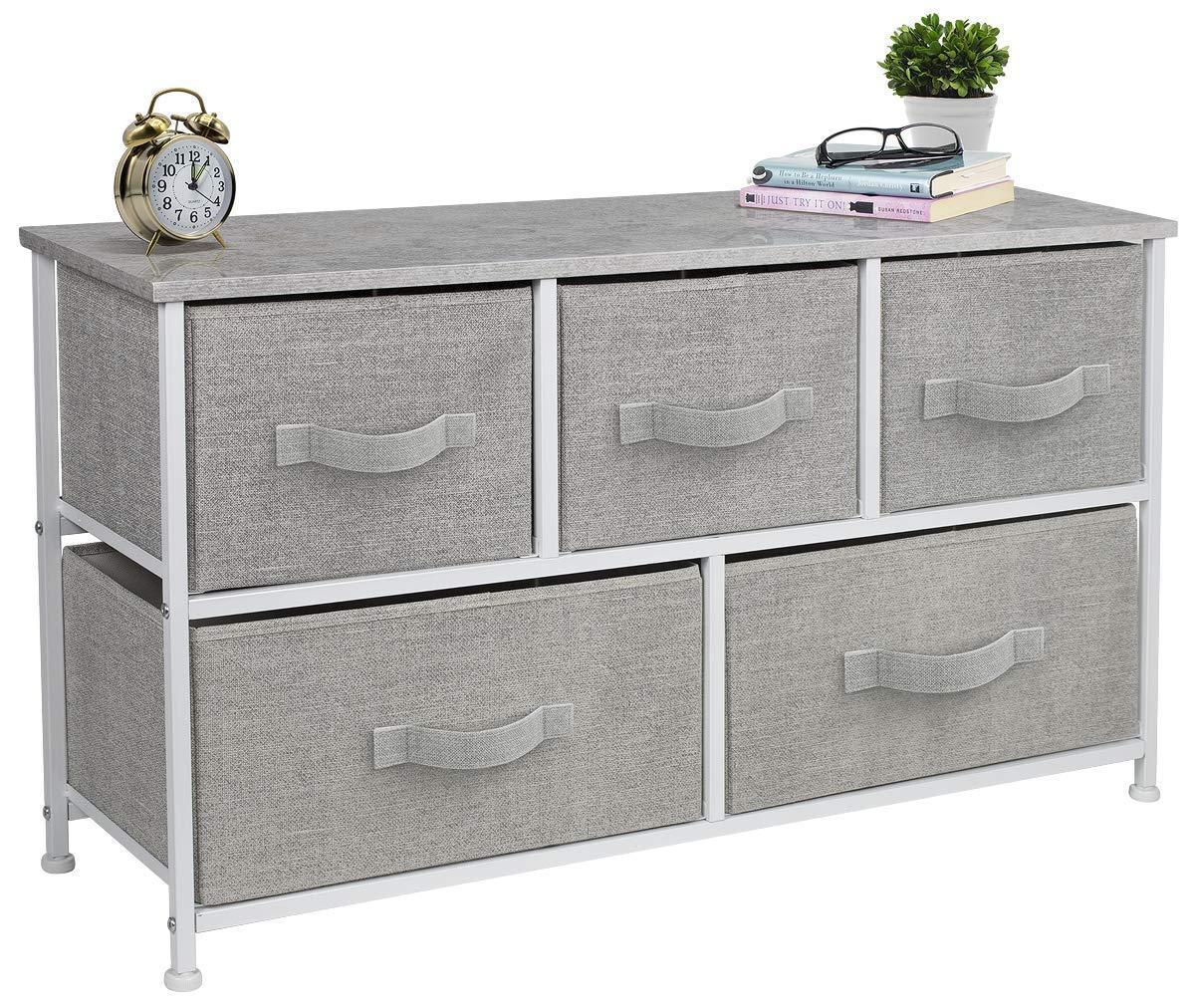 Sorbus Dresser with 5 Drawers - Furniture Storage Tower Unit for Bedroom, Hallway, Closet, Office Organization - Steel Frame, Wood Top, Easy Pull Fabric Bins (Black/Charcoal)