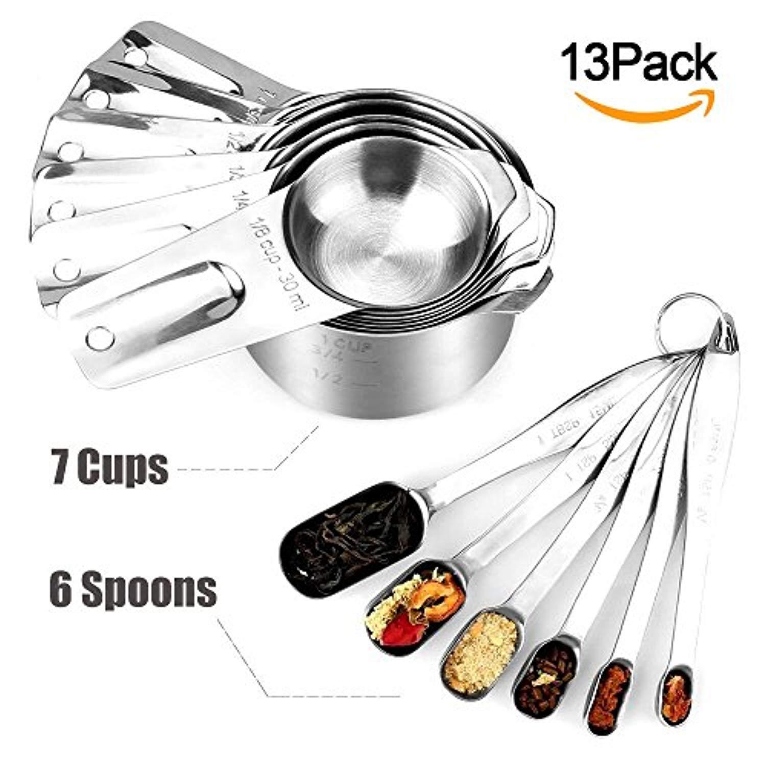 Stainless Steel Measuring Cups and Spoons by XUZOU. Stainless Steel Measuring Cups and Spoons Set of 13. Liquid Measuring Cup or Dry Measuring Cup Set. Stainless Measuring Cups, Nesting cups