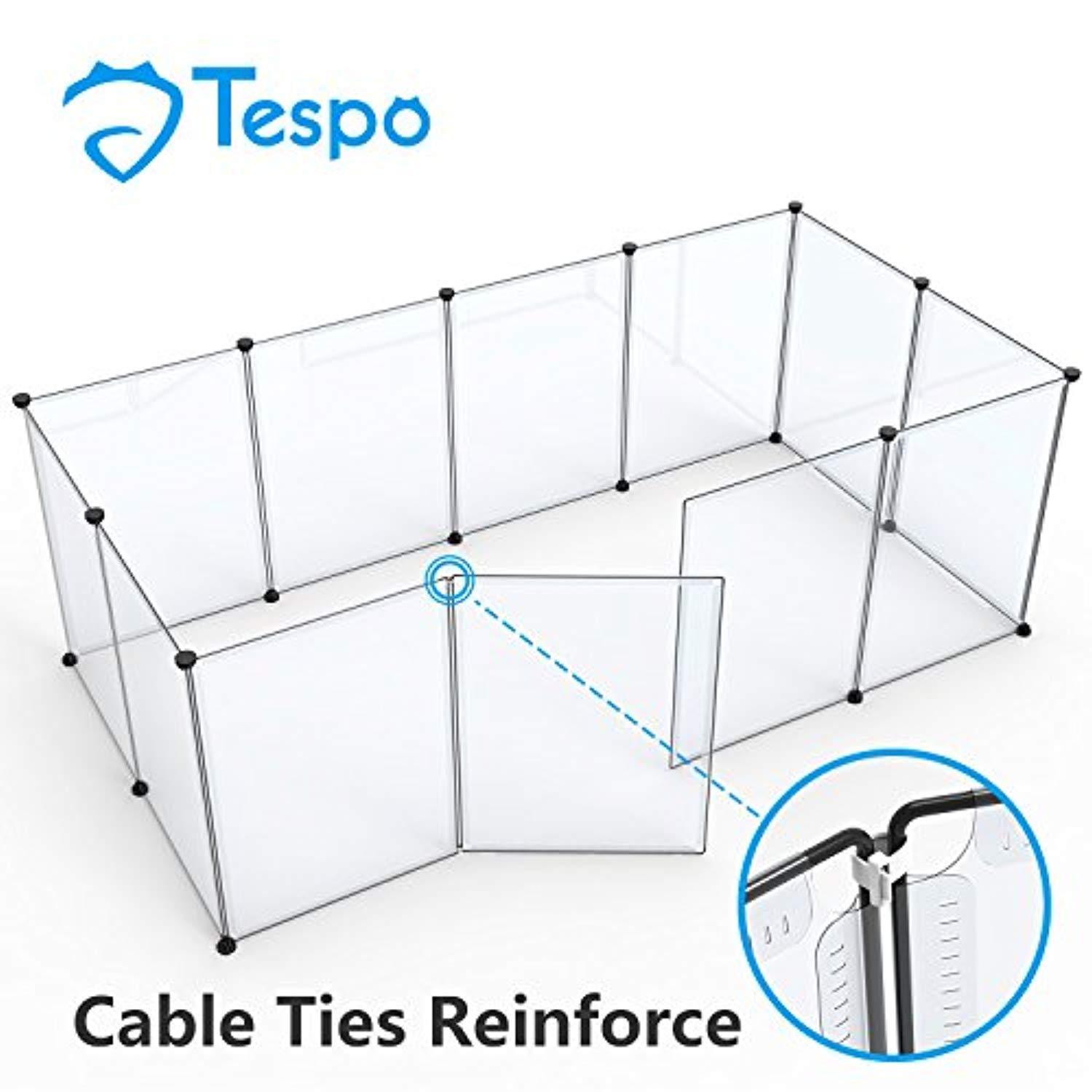 Tespo Dog Playpen, Portable Large Plastic Yard Fence Small Animals, Popup Kennel Crate Fence Tent, Transparent White 12 Panels