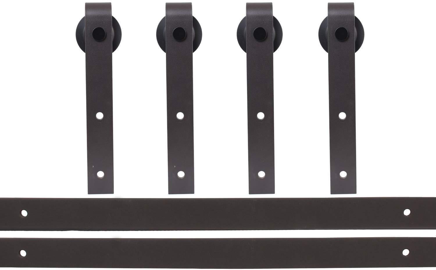 TMS 5 FT Country Antique Dark Coffee Steel Sliding Barn Wood Door Hardware Track Set