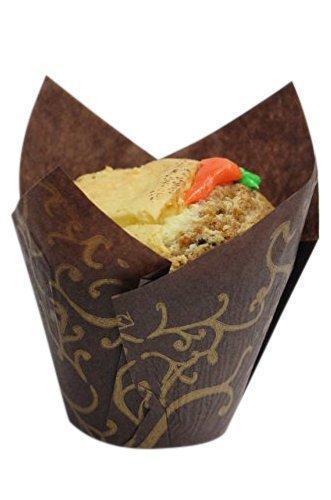 • Decony Large brown Tulip Cupcake Liners Muffin Baking cups Paper Liners - Great for large cupcakes and muffins - Appx. 100 Ct. Diameter: 2" bottom Height: 2 3/4-4