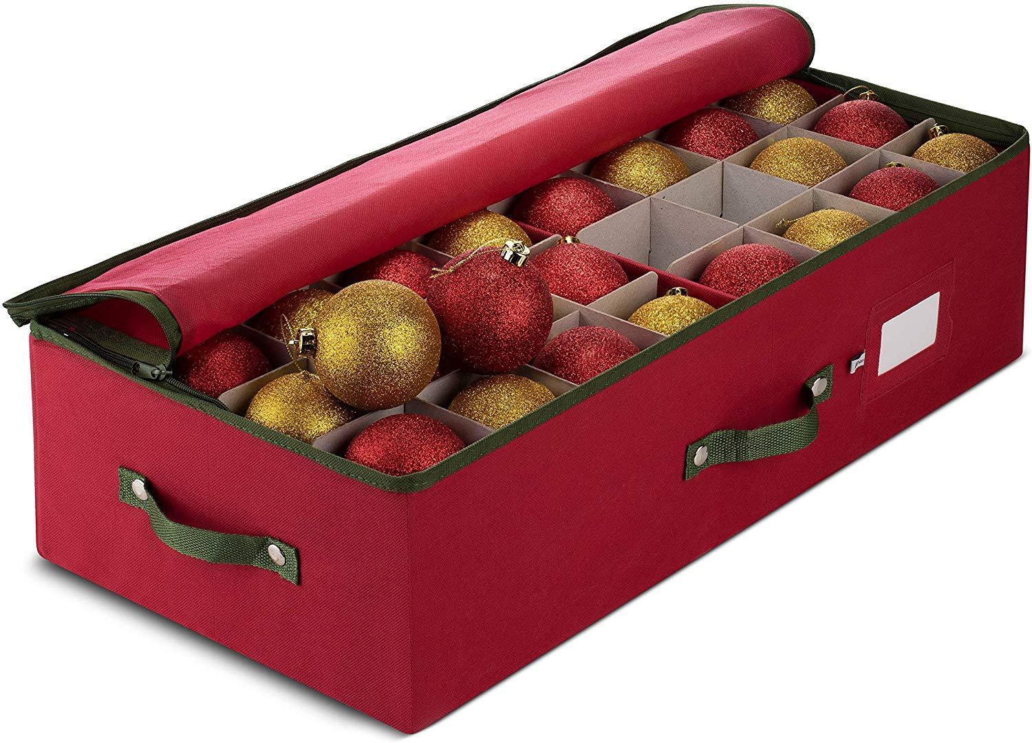 Underbed Christmas Ornament Storage Box Zippered Closure - Stores up to 64 of The 3-inch Standard Christmas Ornaments by ZOBER