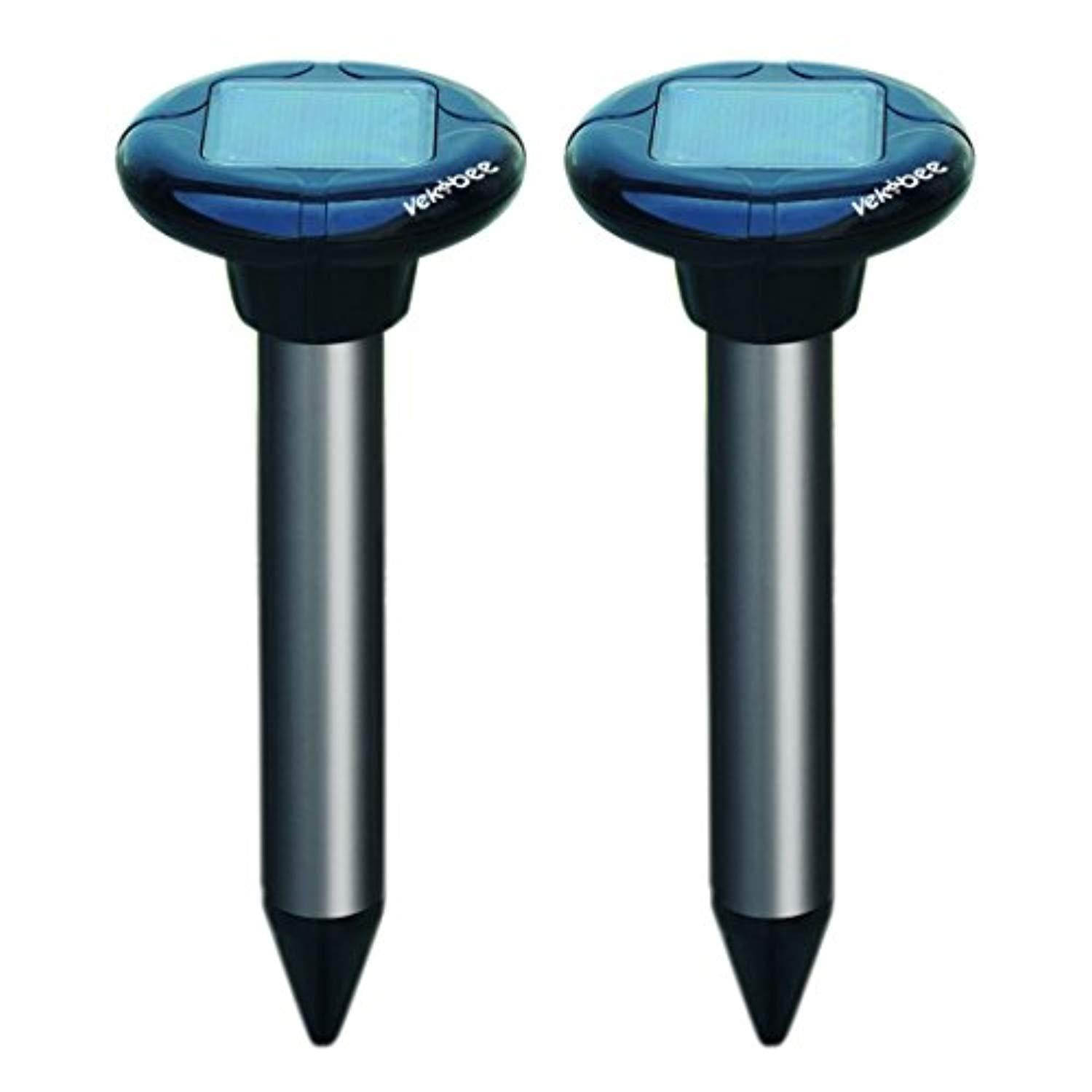 Vekibee 2 Piece Solar Powered Sonic Mole Repellent Rodent Repellent Ultrasonic Pest Repeller Outdoor Pest Control Repels Mole Rodent Vole Shrew Gopher